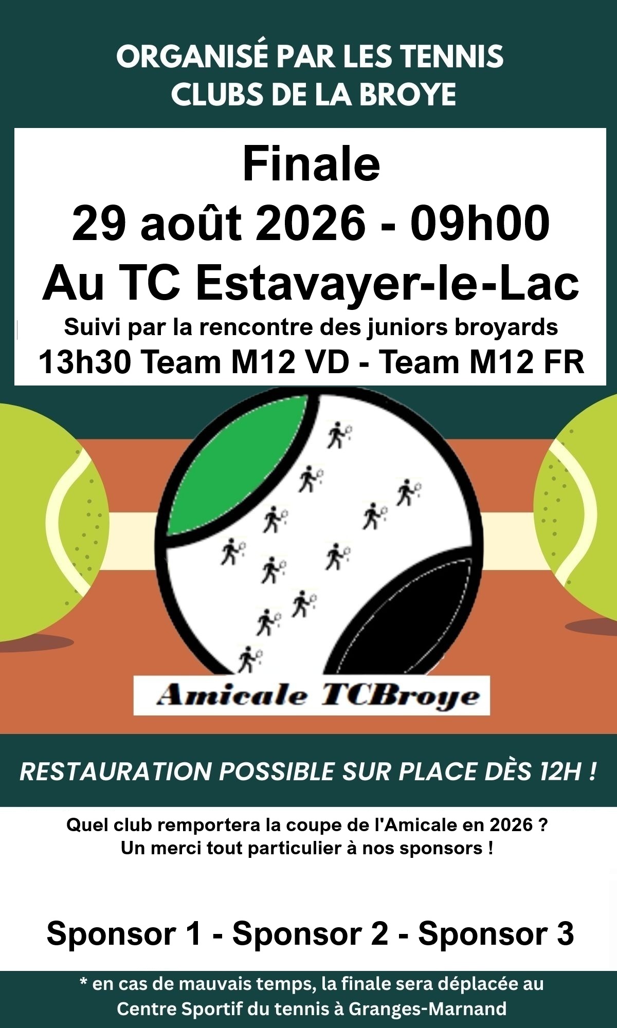 CompétitionsLe TC-Domdidier vainqueur en 2024 ! Le TC-Payerne vainqueur en 2025 ! Le Team Broye-FR M12 vainqueur en 2025 ! Quel club remportera la coupe de l’Amicale en 2026 ? Résultats 2026 Résultats 2025 Résultats 2024